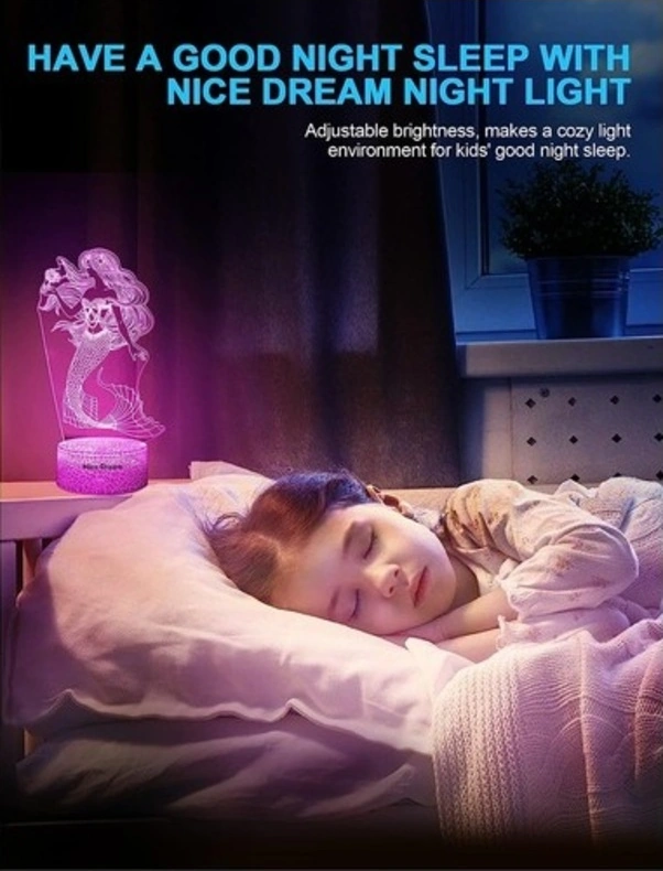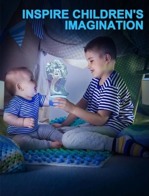 Fastbuy Çocuklar Için Deniz Kızı Gece Lambası, 3d Uzaktan Kumanda 16 Renk, Siyah Dekor Hediye 599kq6 Siyah