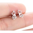 Fastbuy Gümüş Minimalist Kedi Küpe - Paslanmaz Çelik Saplama Kadın Takı Gümüş
