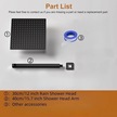Fastbuy Mat Siyah Tüm Metal Paslanmaz Çelik Duş Başlığı, 40 Cm Uzatma Kolu, 30 Cm Kare Şelale, Yüksek Akış, Kurulum Kiti Mat Siyah