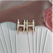 Yarım Halka Boru Model Full Taşlı Elegant Altın Kaplama Gold Renkli Çelik Küpe Gold