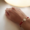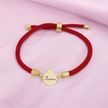 Fatma İsmine Özel İpek Örgülü 14 Ayar Altın Plakalı Nar Motifli Hediye Bileklik-323isim-kırmızı Altın