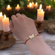 Fatma İsmine Özel Turuncu Derili Kelebek Motifli 14 Ayar Altın Plakalı Hediye Bileklik-502isim Fatma