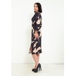 Favori Kadın Desenli Yakada Taş Detayı Truvakar Kollu Şık Midi Elbise 001