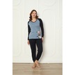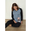 Fawn 04-3024 İnterlok Kumaş Minnoş Kedili Kışlık Ev Kadın Pijama Takımı Mavi