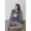 Fawn 3011 Peluş Welsoft Polar Kışlık Kadın Ev Kedi İşlemli Pijama Takımı Gri