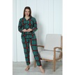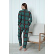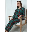 Fawn 3957 Boydan Düğmeli Polar Kışlık Kadın Pijama Takımı Yeşil