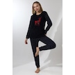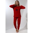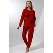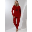 Fawn 5016 Peluş Welsoft Polar Kışlık Yumoş Geyikli Kadın Pijama Takımı Kırmızı