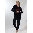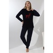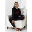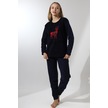 Fawn 5016 Peluş Welsoft Polar Kışlık Yumoş Geyikli Kadın Pijama Takımı-lacivert Lacivert