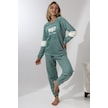 Fawn 5024 Peluş Welsoft Polar Kışlık Yumoş Kadın Pijama Takımı Yeşil