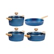 Febern Premium Bio Granit Alüminyum Döküm Nisch Tencere Seti Klasik Mavi-açık Ahşap Kulp