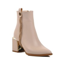 Feles Burgu Şerit Taş Detaylı Klasik Kadın Bot Siyah