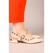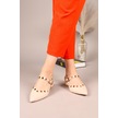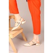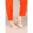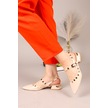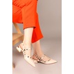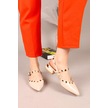 Feles Sarı Pul Detaylı Arkası Açık Kadın Babet Ayakkabı Ten
