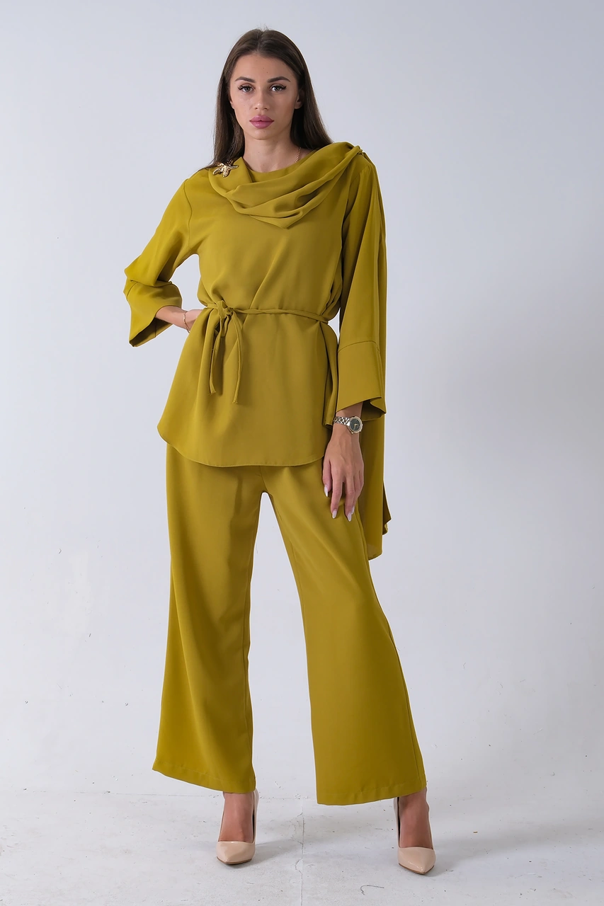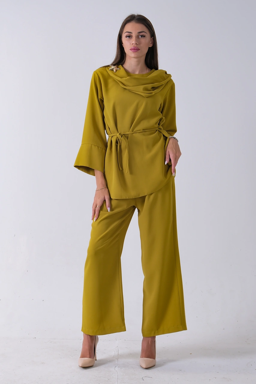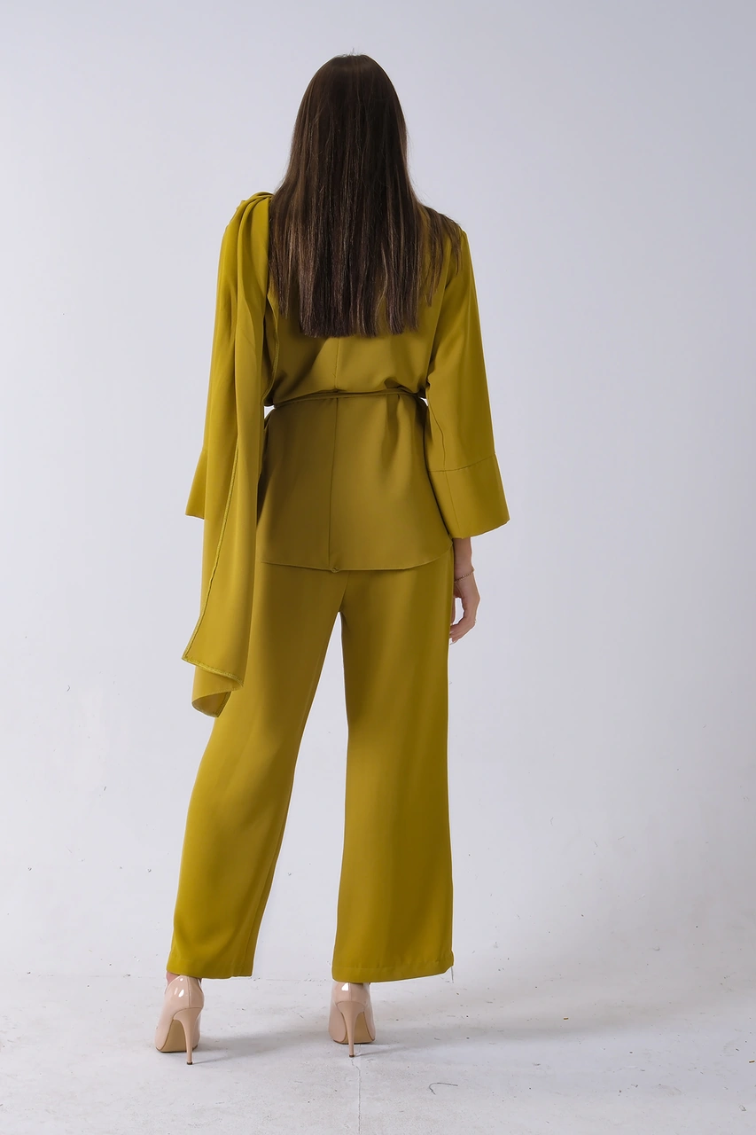 Feminist Fıstık Şal Yaka Üzeri Broş Detaylı Pantolonlu Takım 4592270.22 Fıstık