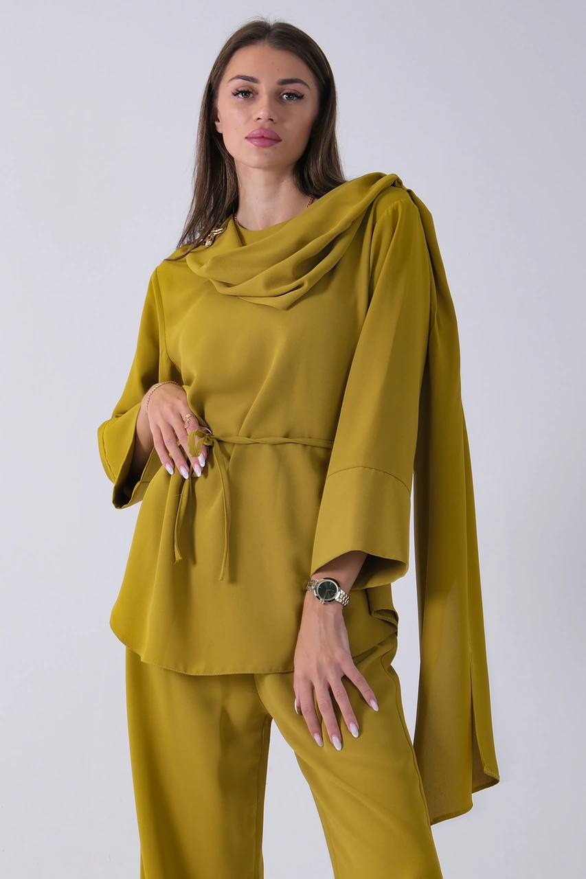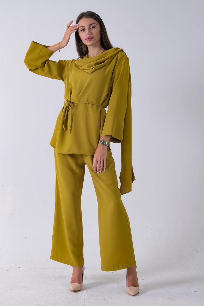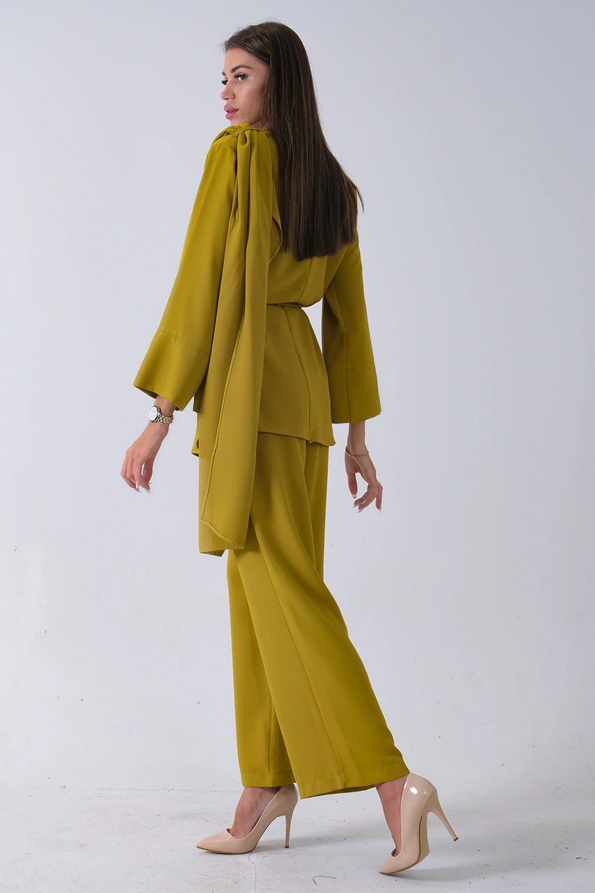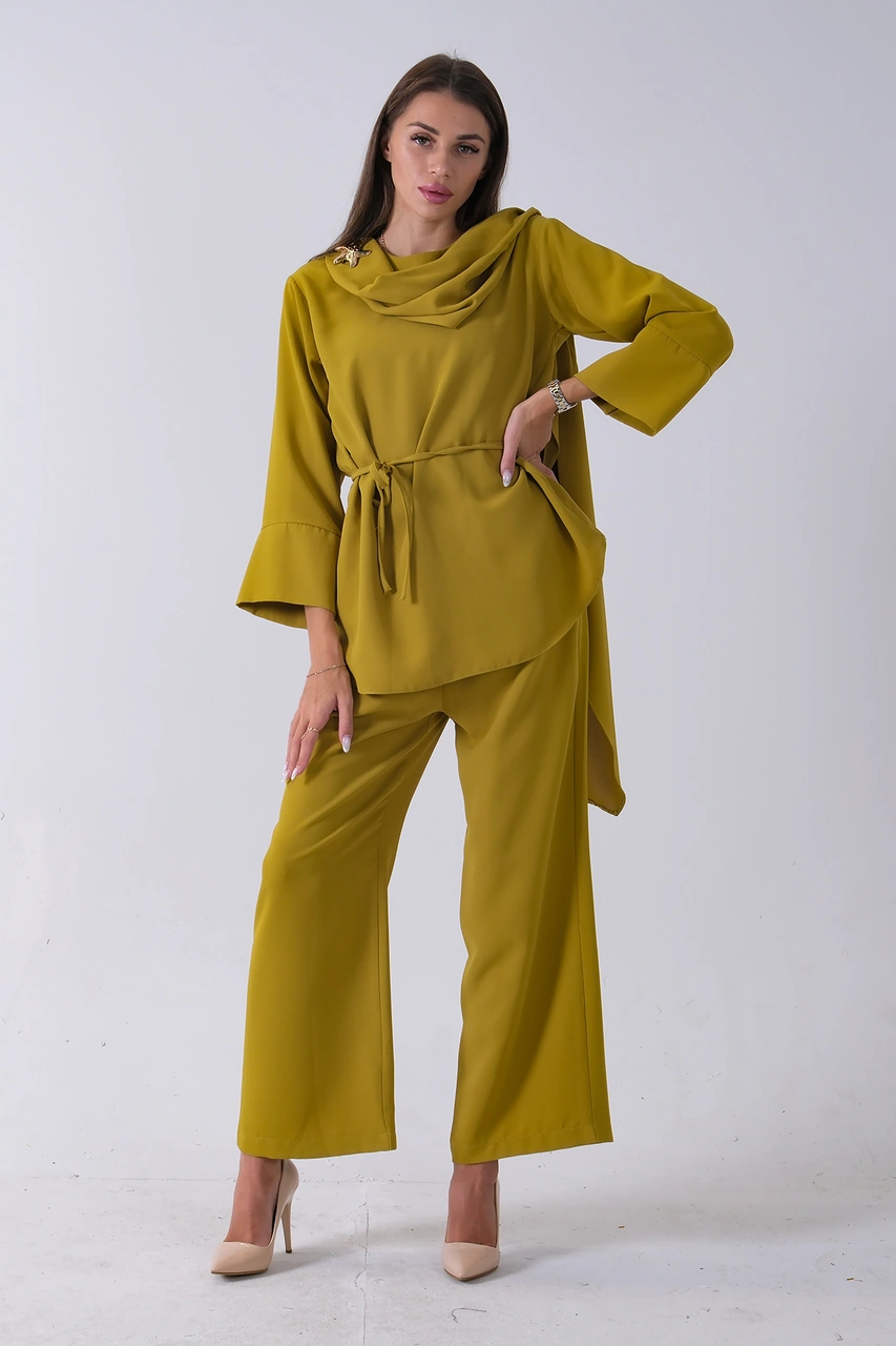 Feminist Fıstık Şal Yaka Üzeri Broş Detaylı Pantolonlu Takım 4592270.22 Fıstık
