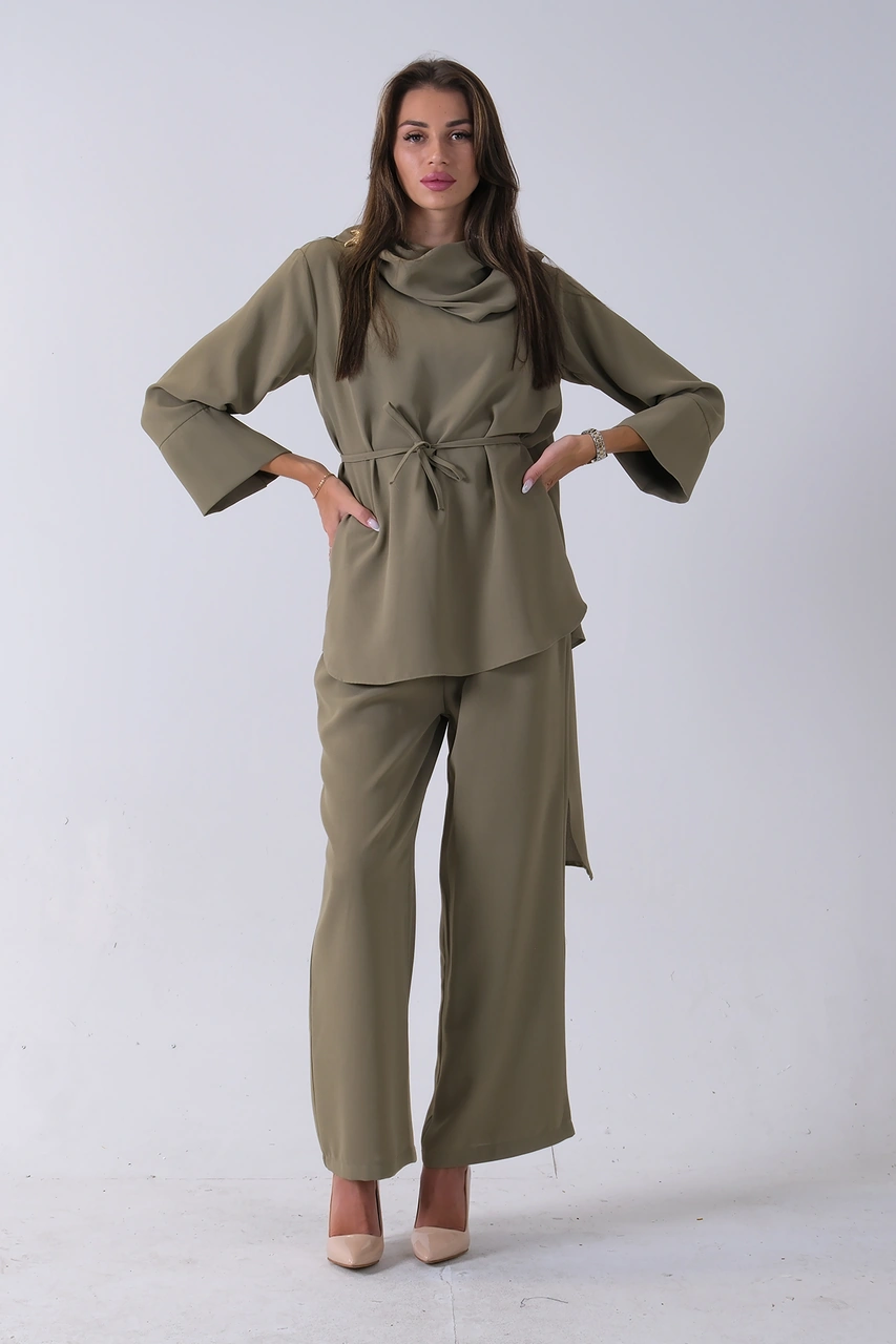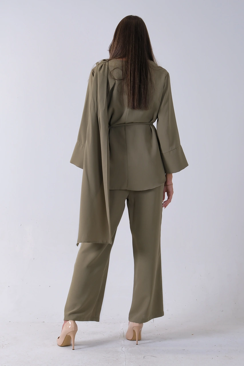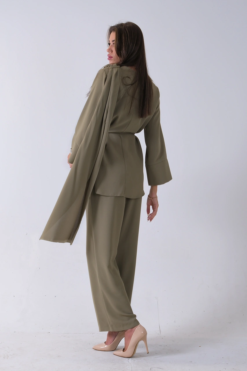 Feminist Haki Şal Yaka Üzeri Broş Detaylı Pantolonlu Takım 4592270.23 Haki