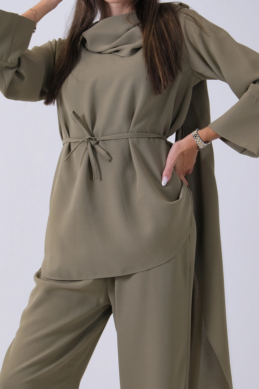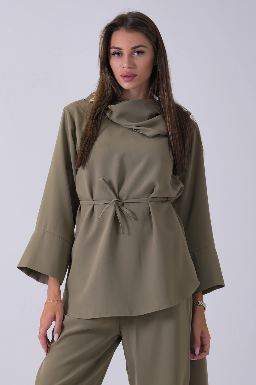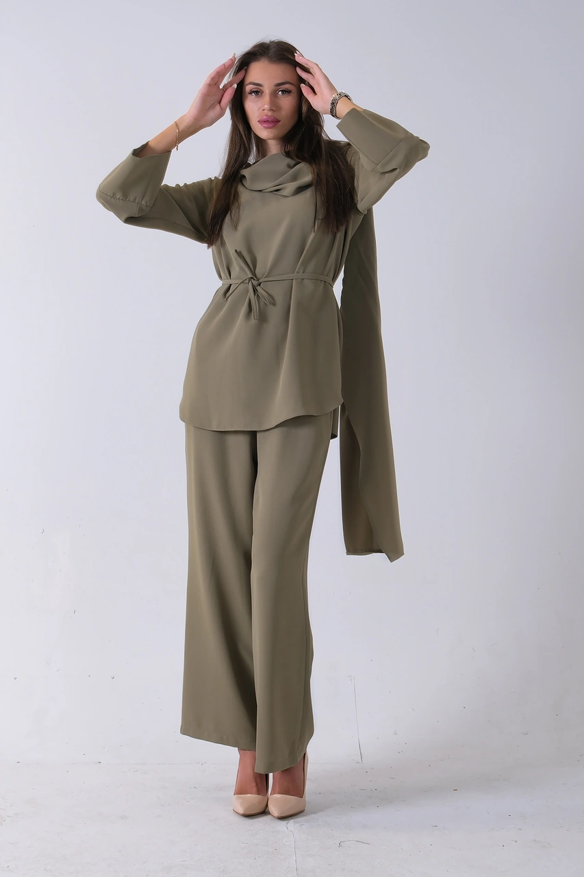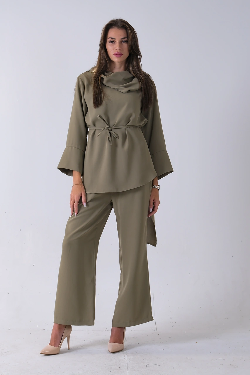 Feminist Haki Şal Yaka Üzeri Broş Detaylı Pantolonlu Takım 4592270.23 Haki