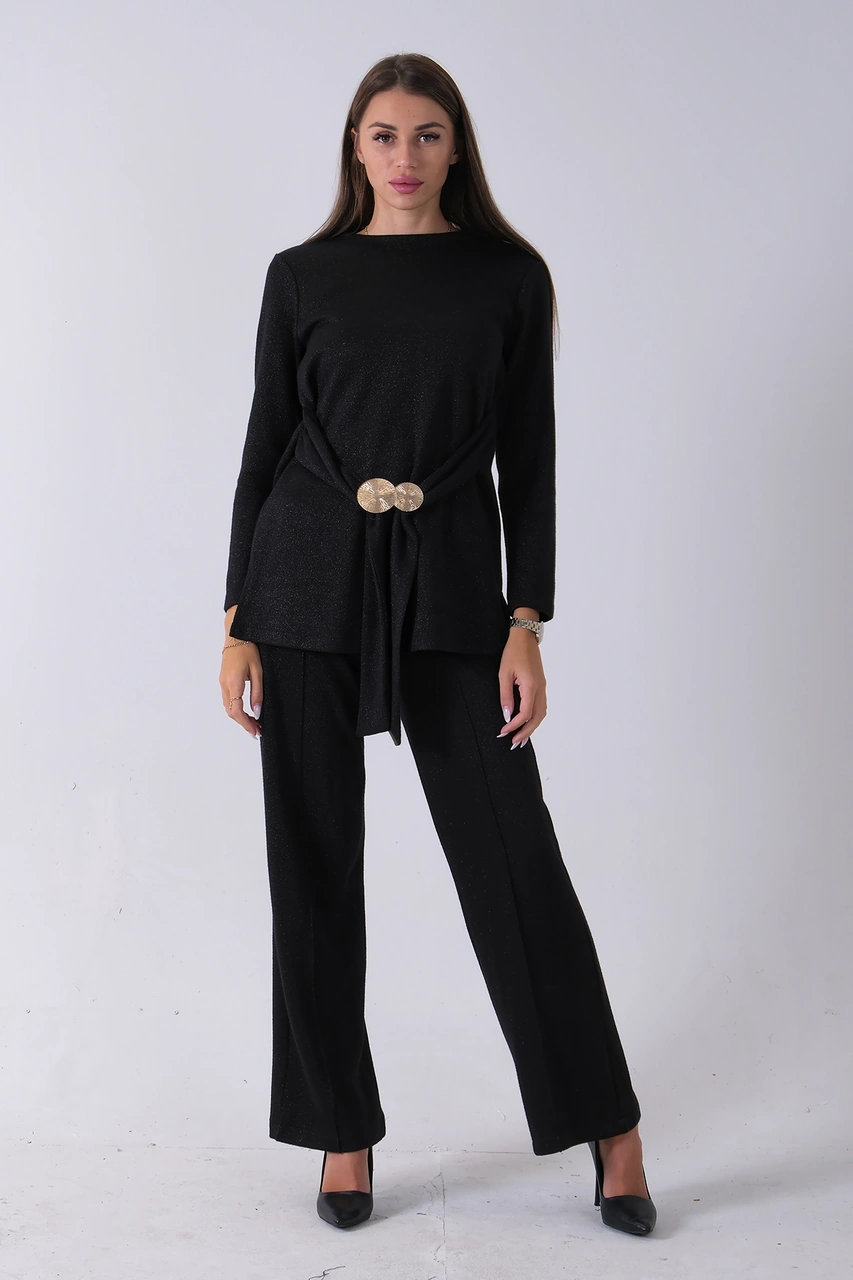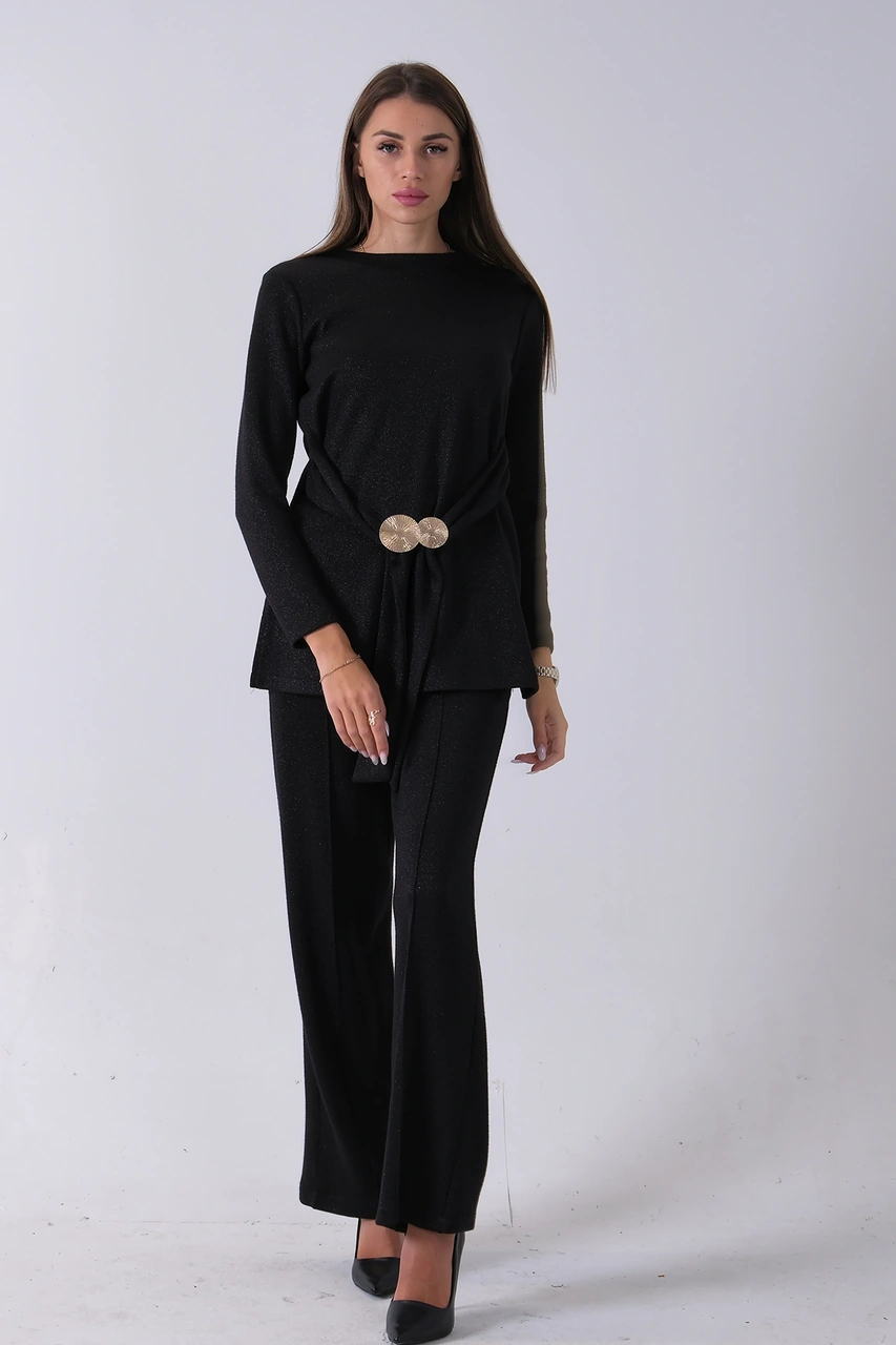 Feminist Siyah Altın Toka Detaylı Pantolonlu Takım 4577282.01 Siyah