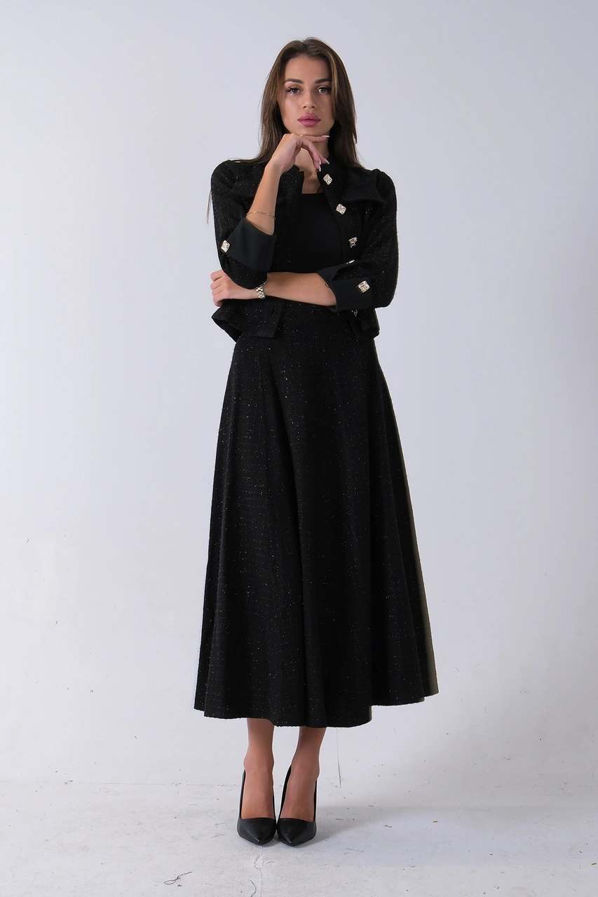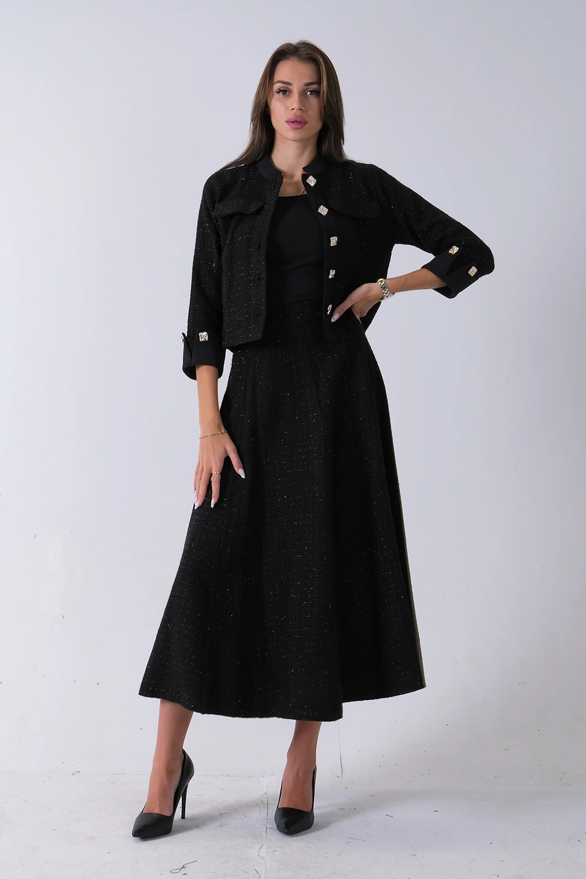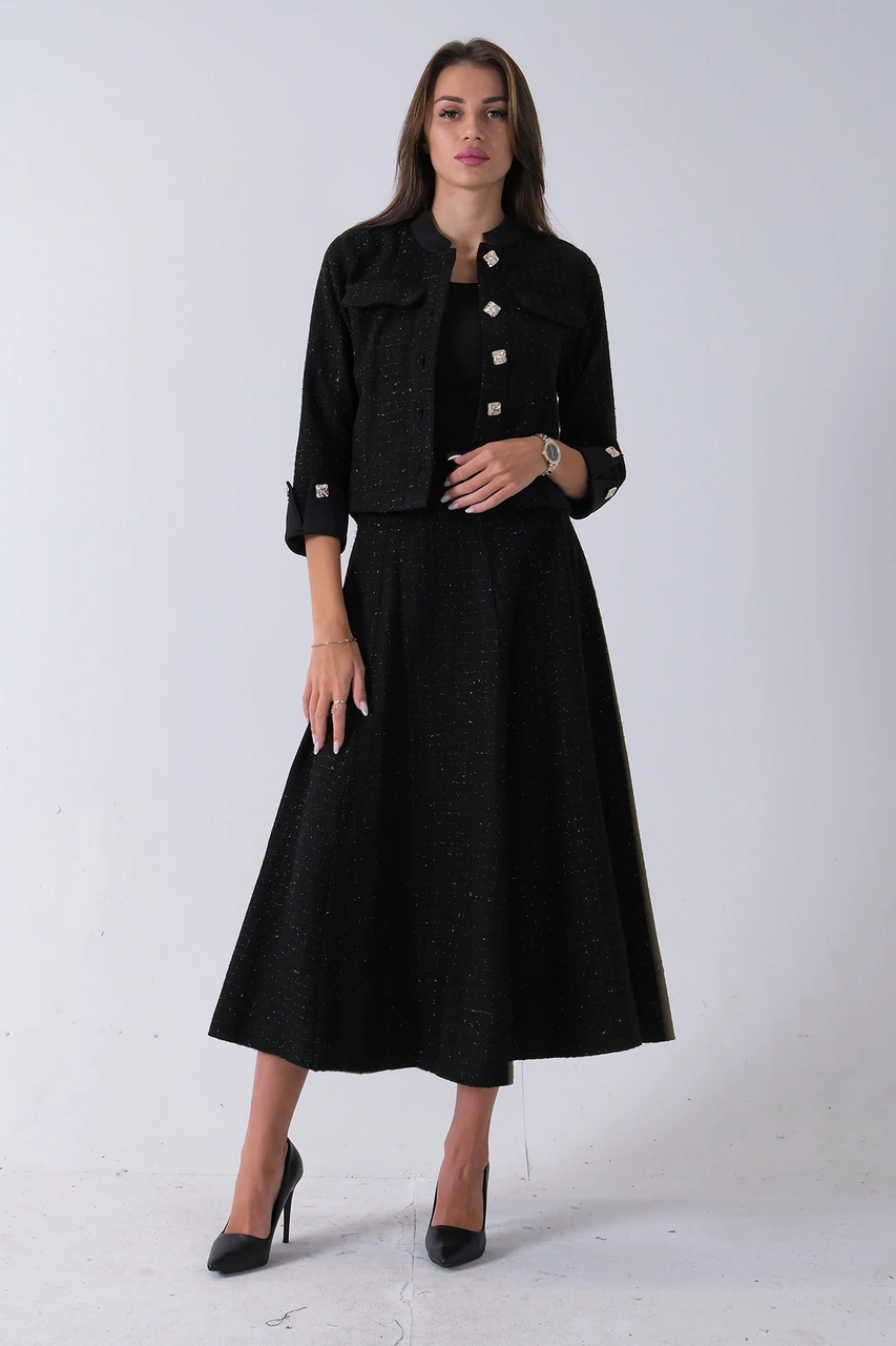Feminist Siyah Önü Düğme Kapamalı Crop Ceket Etekli Tüvid Takım 45950601.01 Siyah