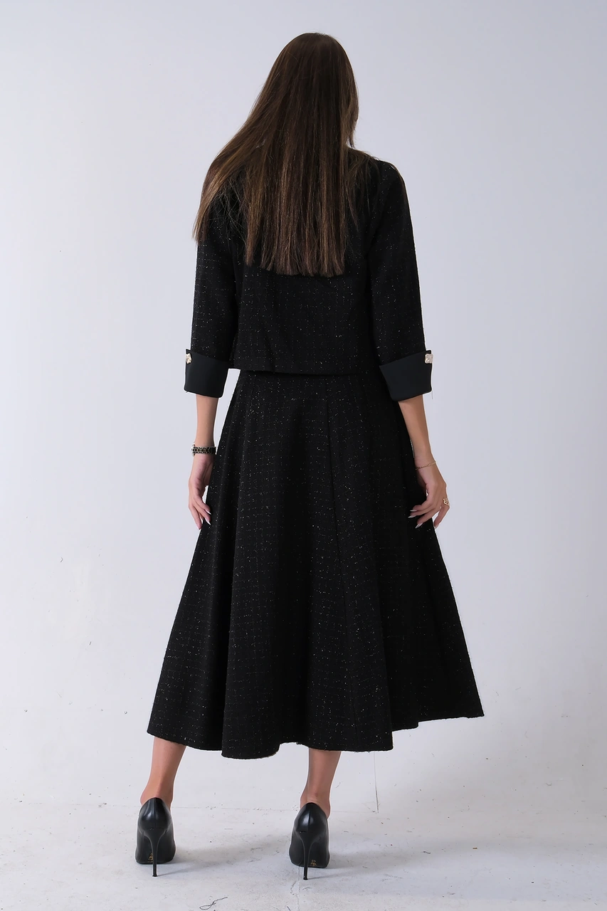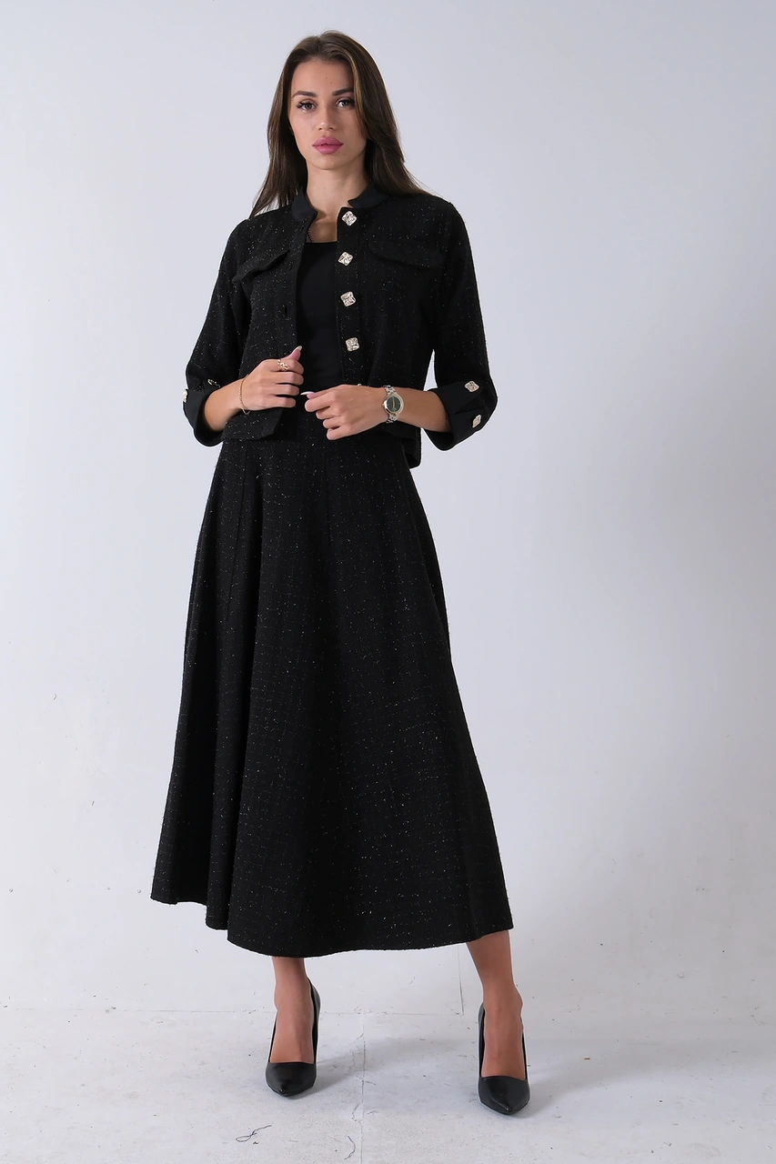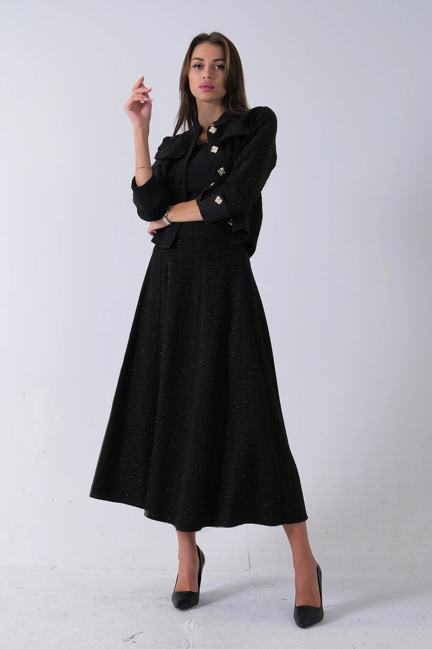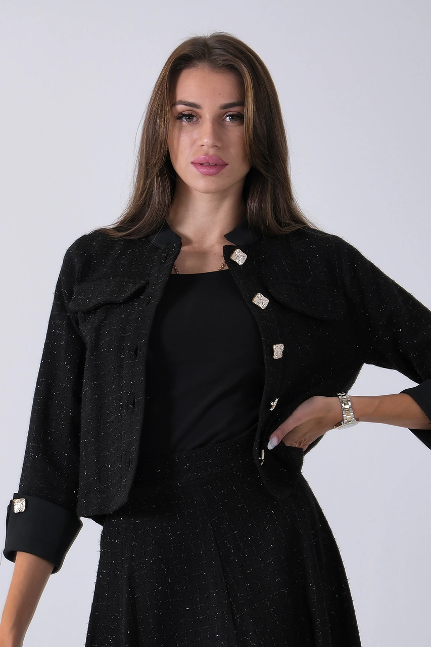 Feminist Siyah Önü Düğme Kapamalı Crop Ceket Etekli Tüvid Takım 45950601.01 Siyah