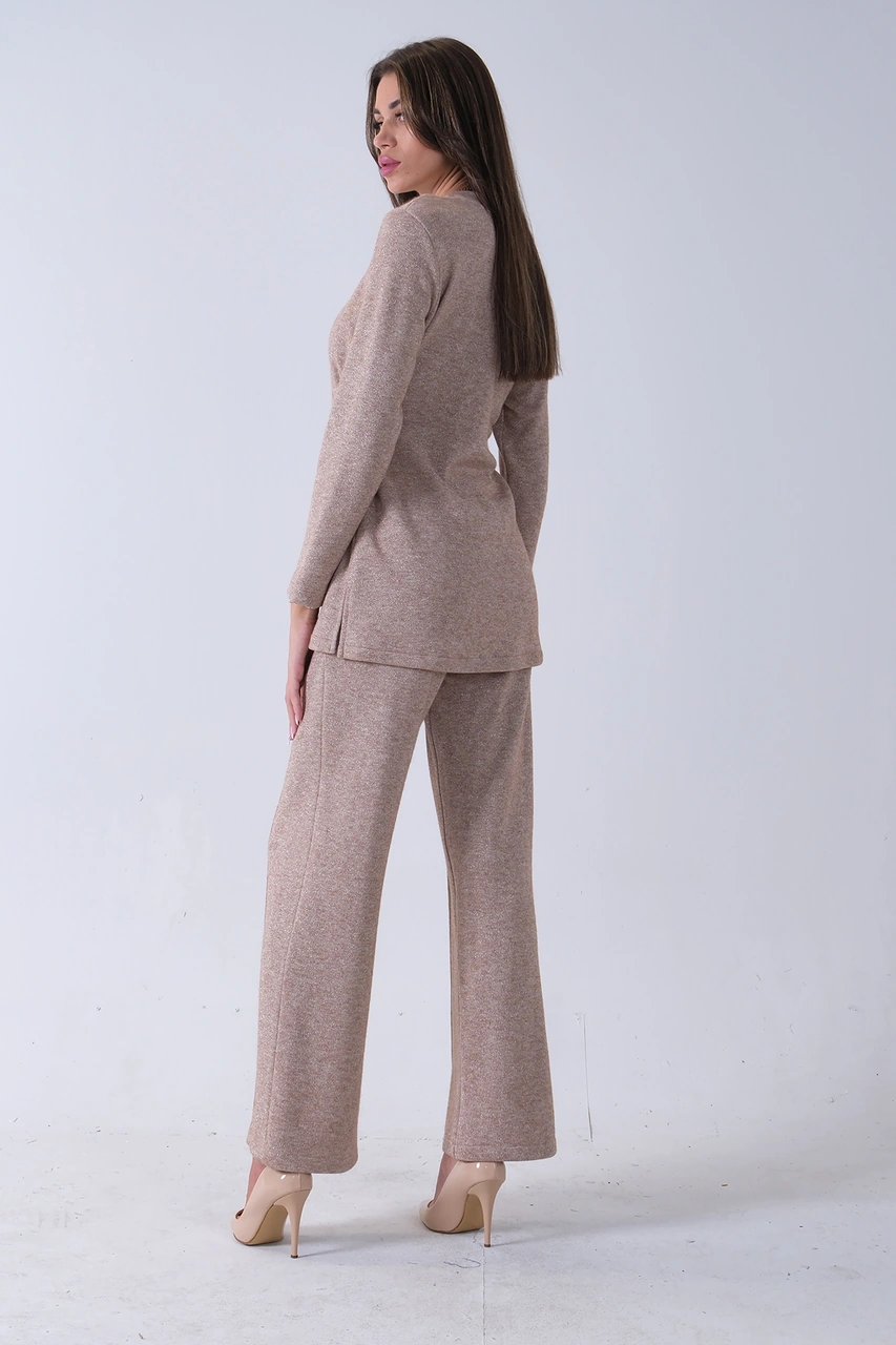 Tesettür İkili Takım Uzun Tunik Bol Paça Pantolon 4006-kahve Kahverengi