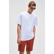 FEON Erkek Oversize Geniş Kesim %100 Organik Pamuk Kalın Dokulu Yuvarlak Yaka Beyaz T-Shirt