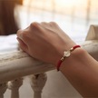 Feride İsmine Özel Nar Motifli İpek Örgülü 14 Ayar Altın Plakalı Hediye Bileklik-323isim-kırmızı Altın