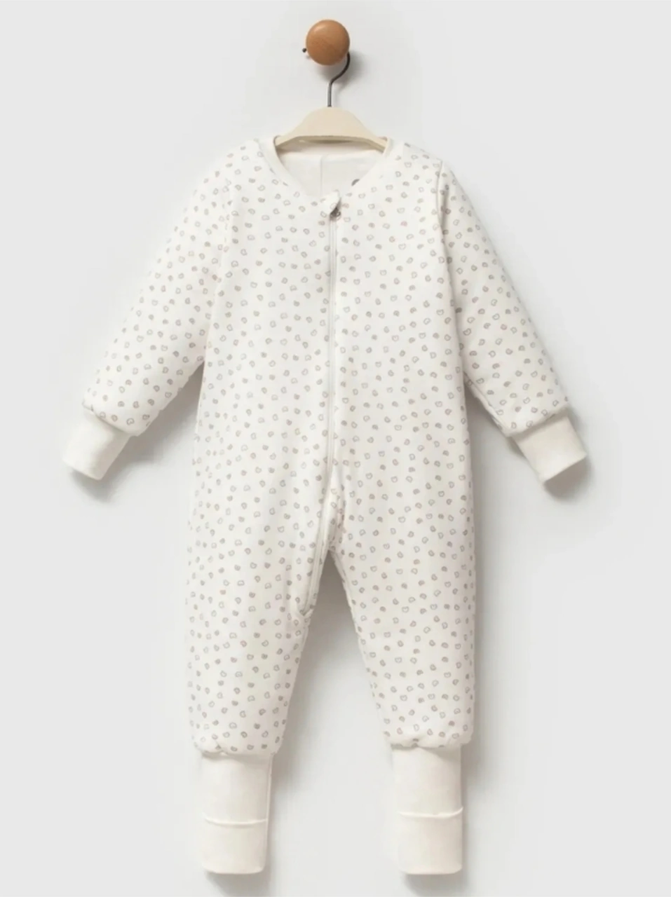 Fermuarlı Bisiklet Yaka Uyku Tulumu Çoraplı Patikli 2,5 Tog Ekru-gül Kurusu