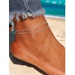 Feron Accessories Gümüş Renk 2li Set Halhal Boncuk Zincir Beyaz Taşlı Gümüş Beyaz