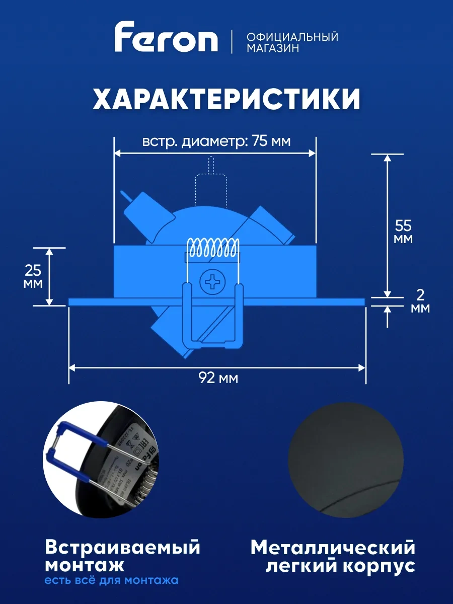 Feron Gömme Tavan Armatürü Gu5.3 248099367 Siyah