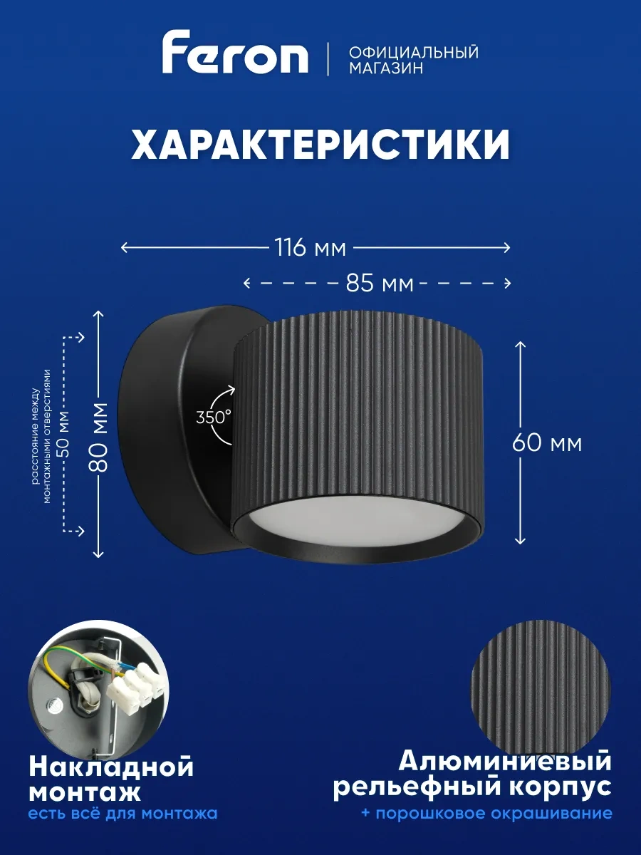 Feron Gx53 Duvar Apliki Tüyü 311677611 Siyah