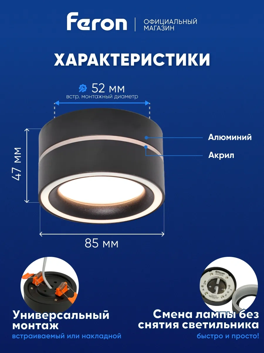 Feron Tavan Spot Lambası Gx53 229124894 Siyah