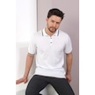 Ferraro Beyaz/Bej Yaka Şerit Düğmeli Erkek Pamuk Triko T-Shirt