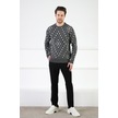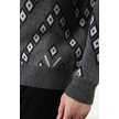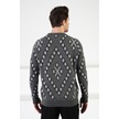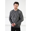 Ferraro Füme Kare Desenli Bisiklet Yaka %100 Kuzu Yün Erkek Kazak Füme