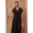 Fiametta Salaş Acı Kahve Keten Yelek Etek Takım Acı Kahverengi