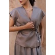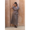 Fiametta Salaş Füme Keten Yelek Etek Takım Füme
