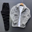 Fifty Color Peluş Polar Gömlek Hırka & Eşofman Altı Takım - Gri - Siyah