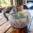 Fil Figürlü Vazo Bej Eskıtme 32 X 27