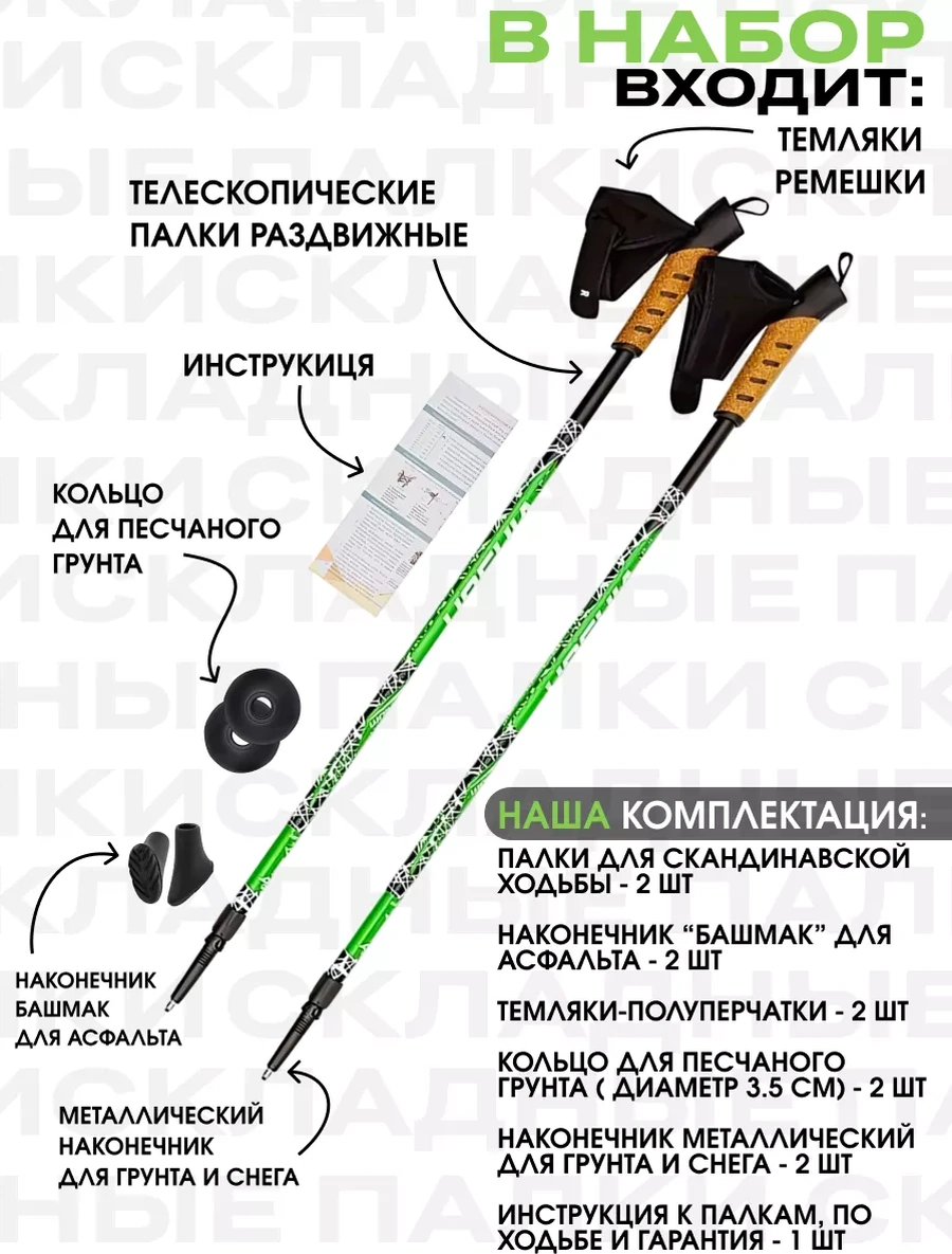 Finpole Nordic Yürüyüşü İçin Katlanabilir Trekking Sopaları 229428809 Yeşil
