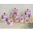 Fiona Mor Çiçek 8 Parça Gold Standlı Porselen Baharat Takımı Purebone-48 Beyaz