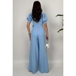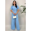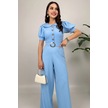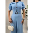 Firenze Kadın Mavi Düğmeli Kemer Detaylı Bol Paça Tulum Zarif Akşam Şıklığı Mavi