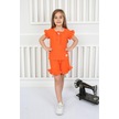 Fırfır Detaylı Şortlu Yazlık Kız Çocuk Takım Turuncu