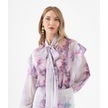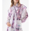 Fırfır Detaylı Transparan Çiçek Desenli Bağlama Yakalı Takım Lila