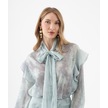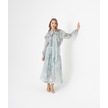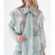 Fırfır Detaylı Transparan Çiçek Desenli Bağlama Yakalı Takım Yeşil