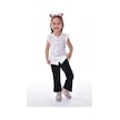 Fırfır Kollu Düğmeli Fiyonk Detaylı Kız Çocuk Alt-üst Takım Beyaz