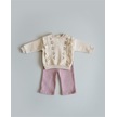 Fırfır Ve Nakış Detaylı Ekru Bebek Sweatshirt Ve Gül Kurusu Eşofman Takımı Ekru
