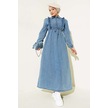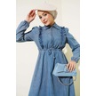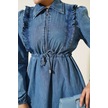 Fırfırlı Fermuarlı Balon Kol Kot Elbise Mavi