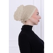 Fırfırlı Önden Dikişli Penye Bone - Kadın Tesettür Bağlamalı Topuz İç Bone-krem Krem
