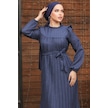 Lara Kumaş Yarım Düğmeli Kadın Elbise - Lacivert / E0121 Lacivert