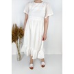 Eteği Volanlı Uzun Elbise Kırık Beyaz