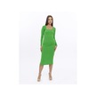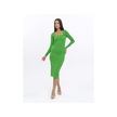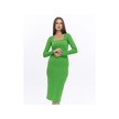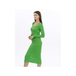 Fitilli Örme Kumaş Uzun Kollu Yırtmaçlı Midi Boy Fiona Elbise-3303-yeşil Yeşil
